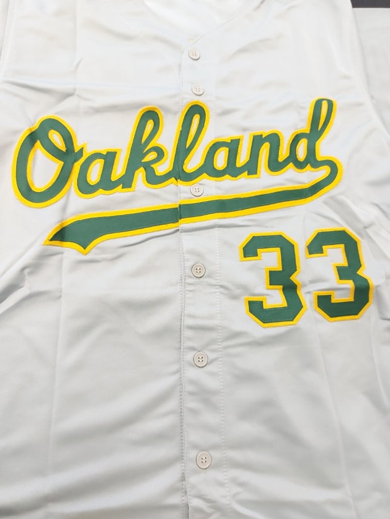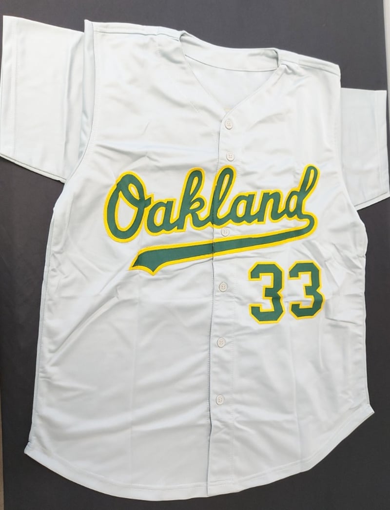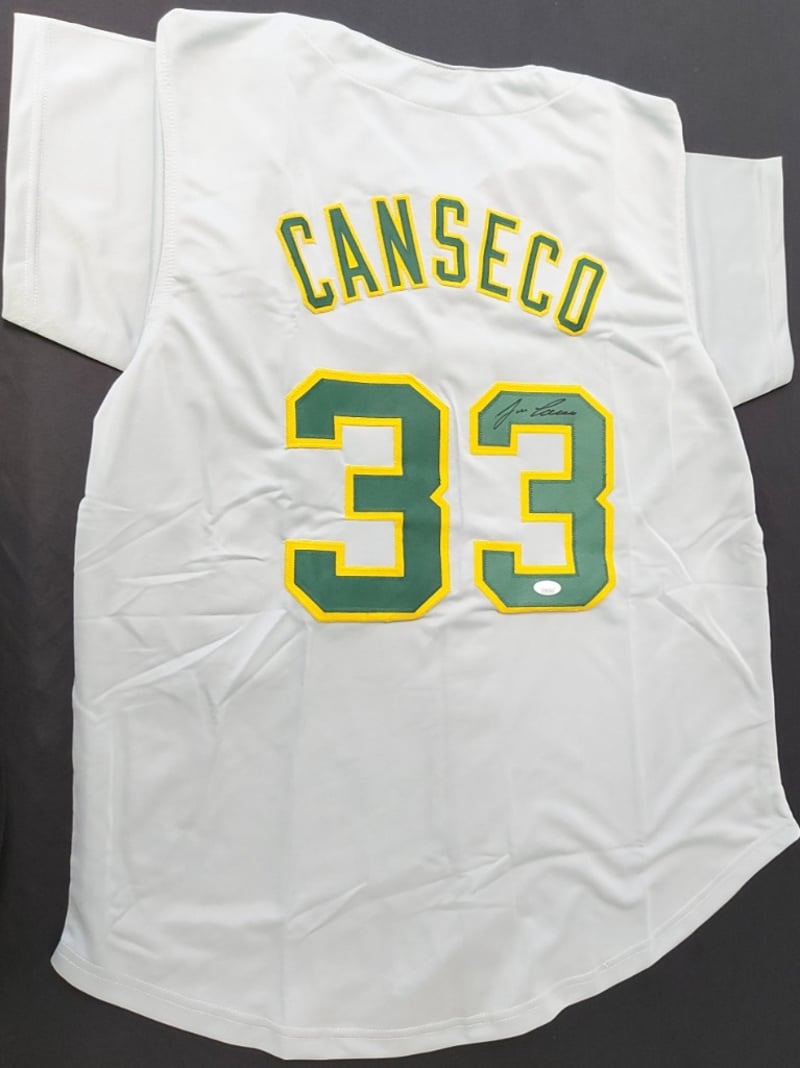 JOSE CANSECO OAKLAND ATHLETICS SIGNED #33 GREY JERSEY