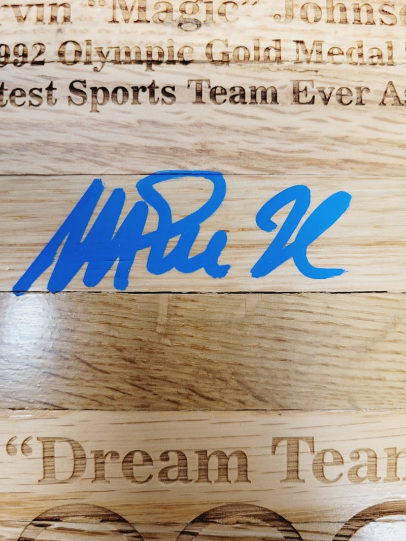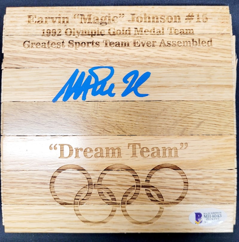 EARVIN " MAGIC " JOHNSON #15 SIGNED FLOORBOARD PIECE CELEBRATING THE 1992 U.S. OLYMPIC GOLD MEDAL BASKETBALL TEAM488526+96