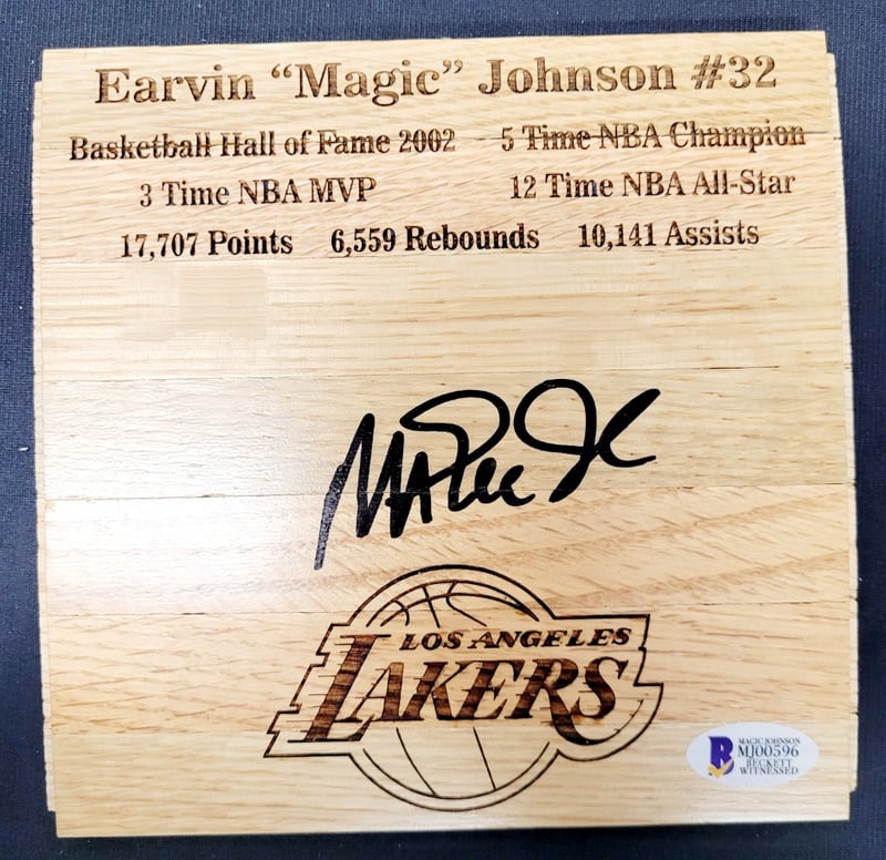 EARVIN " MAGIC " JOHNSON #32 SIGNED FLOORBOARD PIECE CELEBRATING BASKETBALL HALL OF FAME 2002488526+102