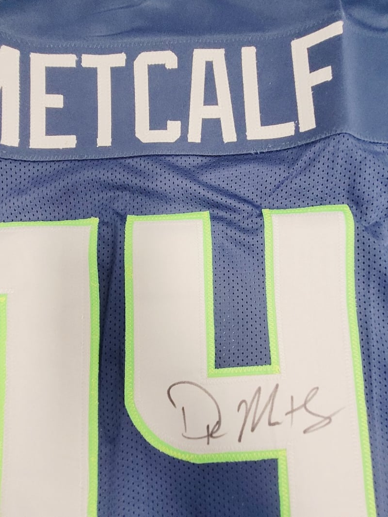 DK METCALF SEATTLE SEAHAWKS SIGNED #14 BLUE JERSEY