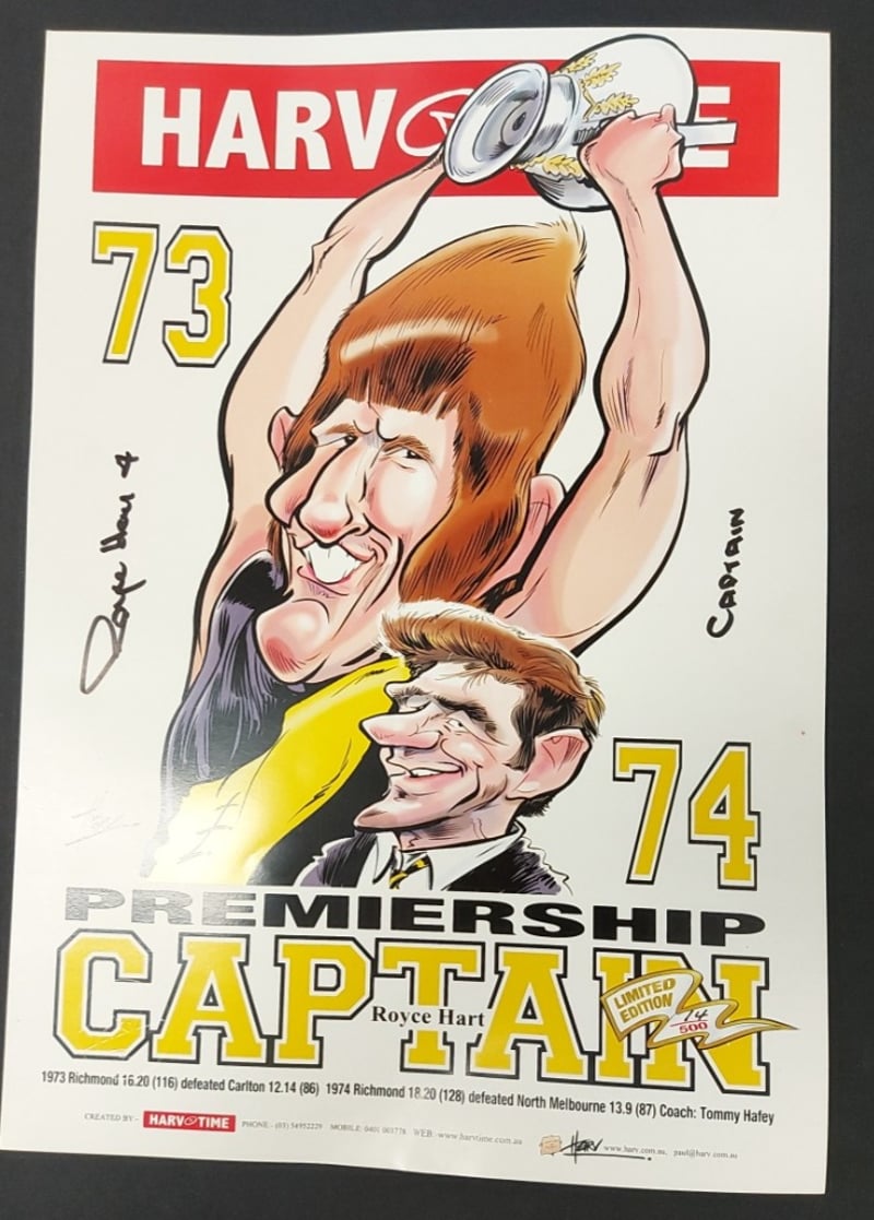 LIMITED EDITION "HARV TIME" COLLECTIBLE PRINT FEATURING RICHMOND FOOTBALL CLUB LEGEND ROYCE HART, CELEBRATING HIS ROLE AS THE PREMIERSHIP CAPTAIN IN 1973 AND 1974488526+182