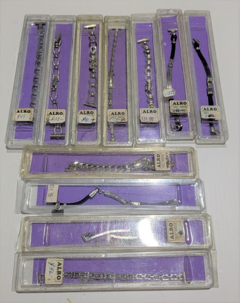 VINTAGE WATCH BANDS, SOME WITH SAFETY CHAINS