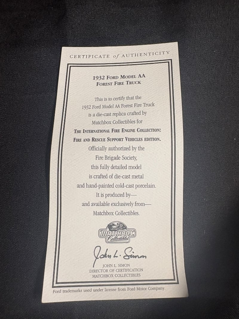 MATCHBOX COLLECTIBLES 1932 FORD MODEL AA FOREST FIRE TRUCK - "MODES OF YESTERYEAR" SERIES Item Size: Height: 5cm, Width: 3cm, Depth: 12cm, Weight: 0.5Kg Condition: Good - Refer To Images 584552+4