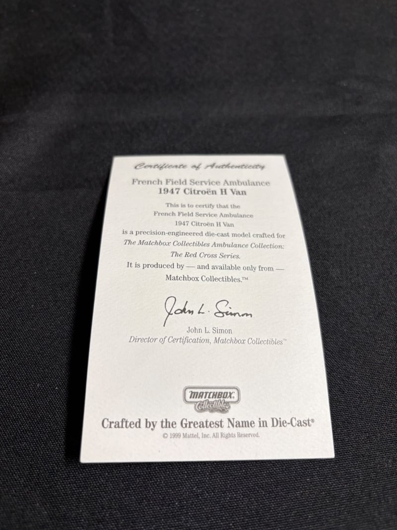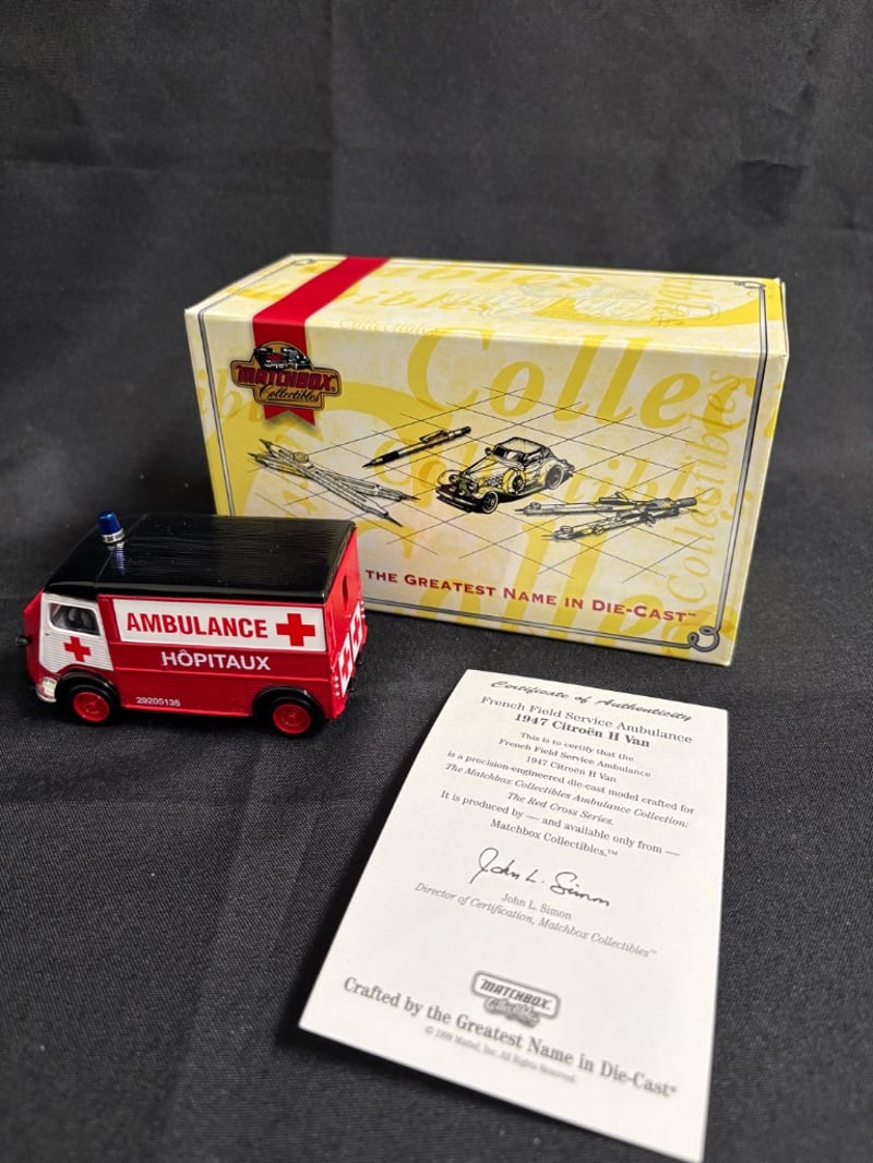 MATCHBOX COLLECTIBLES FRENCH FIELD SERVICE AMBULANCE 1947 CITROËN H VAN - RED CROSS SERIES WITH CERTIFICATE OF AUTHENTICITY Item Size: Height: 5cm, Width: 3cm, Depth: 10cm, Weight: 0.5Kg Condition: Good - Refer To Images 584552+7