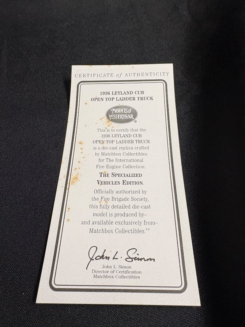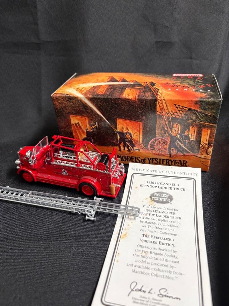 1936 LEYLAND CUB OPEN TOP LADDER TRUCK - MODELS OF YESTERYEAR DIE-CAST REPLICA Item Size: Height: 5cm, Width: 5cm, Depth: 12cm, Weight: 0.5Kg Matchbox Collectibles "Models Of Yesteryear" Die-Cast Replica Of A 1936 Leyland Cub Open Top Ladder Truck Finished In Bright Red With Detailed Chrome Fittings, And Articulated Extending Ladder Mechanism. Condition: Good - Refer To Images 584552+11
