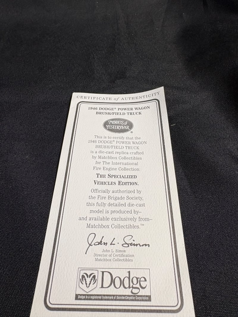 MATCHBOX COLLECTIBLES 1946 DODGE POWER WAGON BRUSHFIELD TRUCK - MODELS OF YESTERYEAR SPECIALIZED VEHICLES EDITION Item Size: Height: 5cm, Width: 3cm, Depth: 10cm, Weight: 0.5Kg Condition: Good - Refer To Images 584552+12