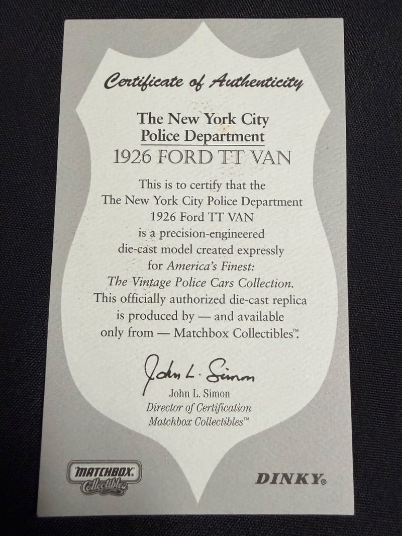 MATCHBOX COLLECTIBLES 1926 FORD TT VAN - NEW YORK CITY POLICE DEPARTMENT Item Size: Height: 5cm, Width: 3cm, Depth: 10cm, Weight: 0.5Kg Condition: Good - Refer To Images 584552+19
