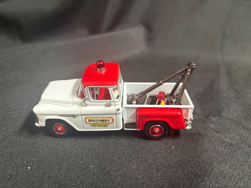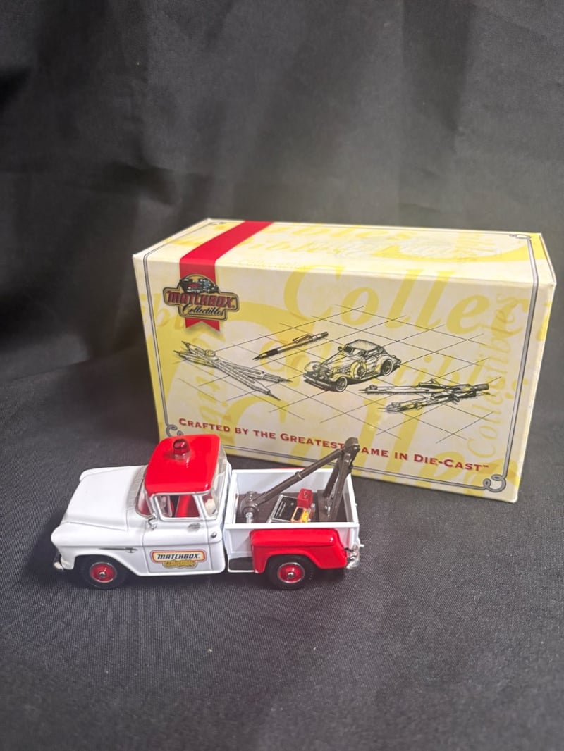 MATCHBOX COLLECTIBLES 1957 CHEVROLET TOW TRUCK DIE-CAST MODEL WITH ORIGINAL BOX Item Size: Height: 5cm, Width: 3cm, Depth: 10cm, Weight: 0.5Kg Condition: Good - Refer To Images 584552+33