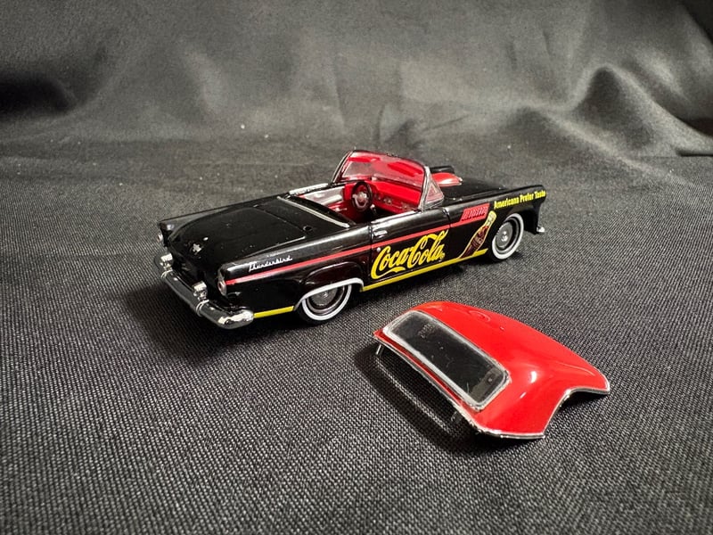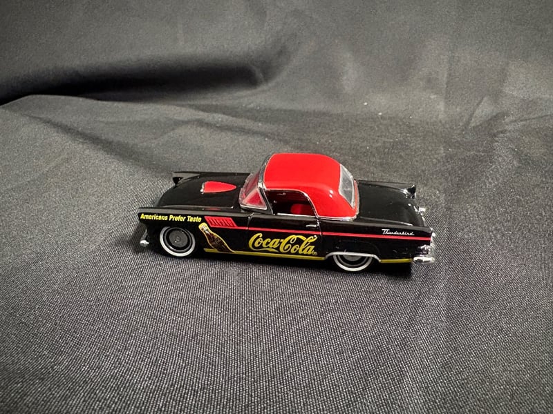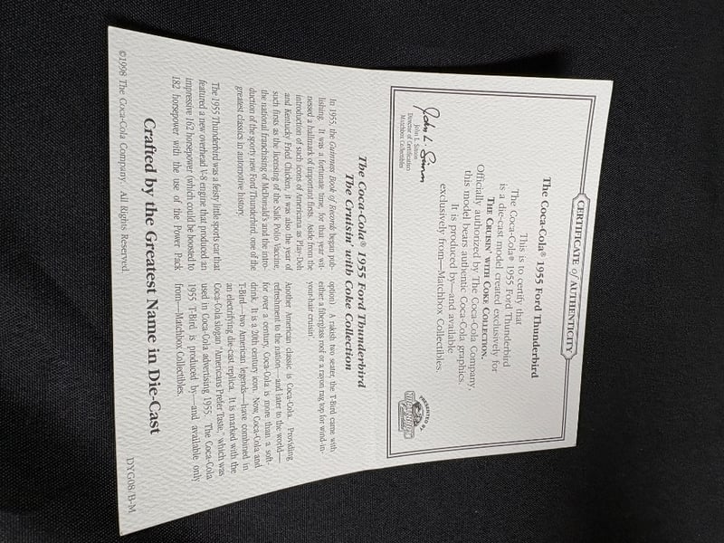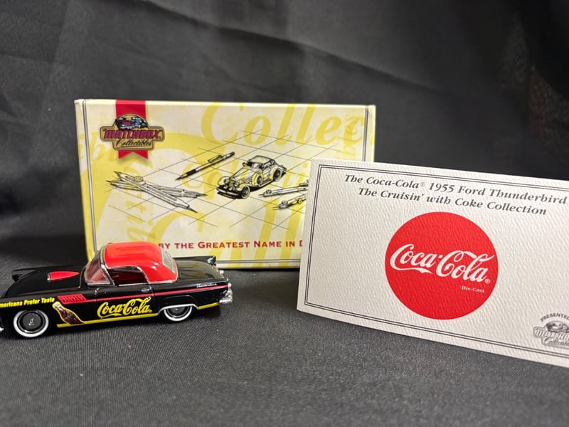 THE COCA-COLA 1955 FORD THUNDERBIRD "THE CRUISIN' WITH COKE COLLECTION" DIE-CAST MODEL WITH CERTIFICATE OF AUTHENTICITY Item Size: Height: 5cm, Width: 3cm, Depth: 10cm, Weight: 0.5Kg Condition: Good - Refer To Images 584552+92