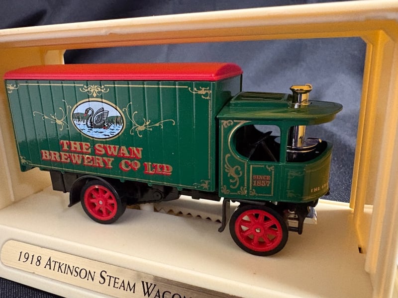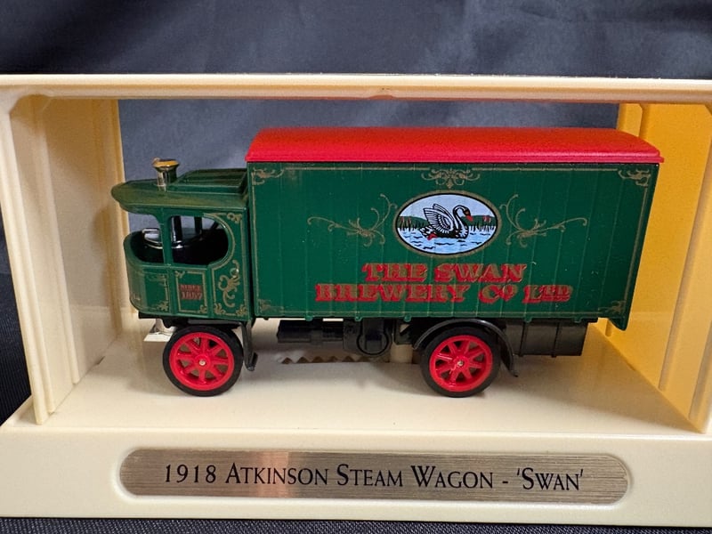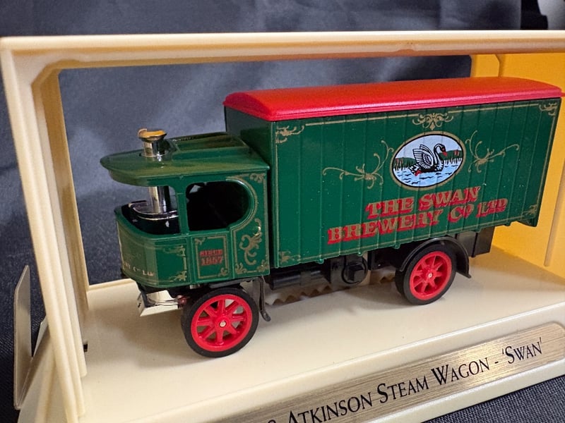 MATCHBOX MODELS OF YESTERYEAR 1918 ATKINSON STEAM WAGON 'SWAN' BREWERY DIE-CAST MODEL Item Size: Height: 8cm, Width: 9cm, Depth: 16cm, Weight: 1Kg Condition: Good - Refer To Images 584552+111
