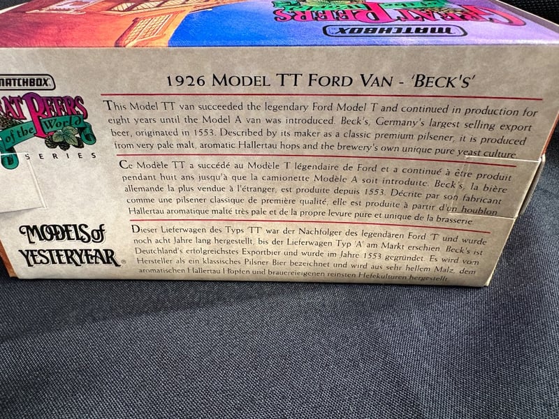MATCHBOX MODELS OF YESTERYEAR 1926 MODEL TT FORD VAN - BECK'S BREWERY Item Size: Height: 8cm, Width: 9cm, Depth: 16cm, Weight: 1Kg Condition: Good - Refer To Images 584552+119