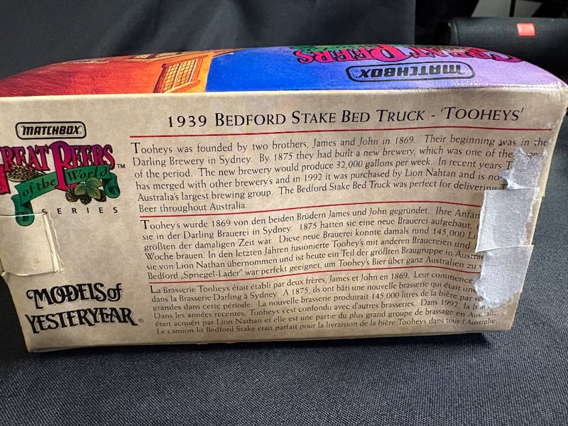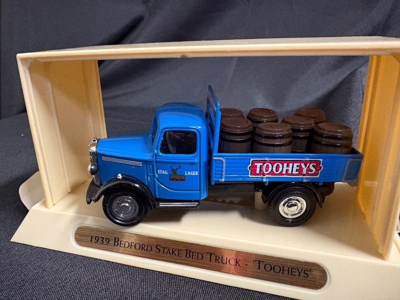 MATCHBOX MODELS OF YESTERYEAR 1939 BEDFORD STAKE BED TRUCK - TOOHEYS Item Size: Height: 8cm, Width: 9cm, Depth: 16cm, Weight: 1Kg Condition: Good - Refer To Images 584552+123
