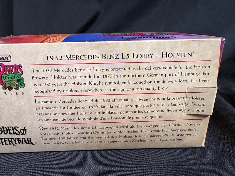 MATCHBOX MODELS OF YESTERYEAR 1932 MERCEDES BENZ L5 LORRY - HOLSTEN BREWERY Item Size: Height: 8cm, Width: 9cm, Depth: 16cm, Weight: 1Kg Condition: Good - Refer To Images 584552+126