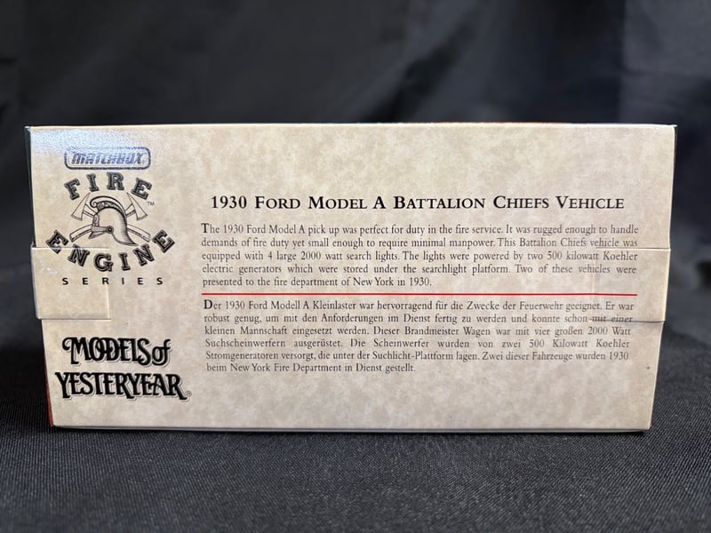 MATCHBOX MODELS OF YESTERYEAR 1930 FORD MODEL A BATTALION CHIEFS FIRE ENGINE Item Size: Height: 5cm, Width: 3cm, Depth: 10cm, Weight: 0.5Kg Condition: Good - Refer To Images 584552+128