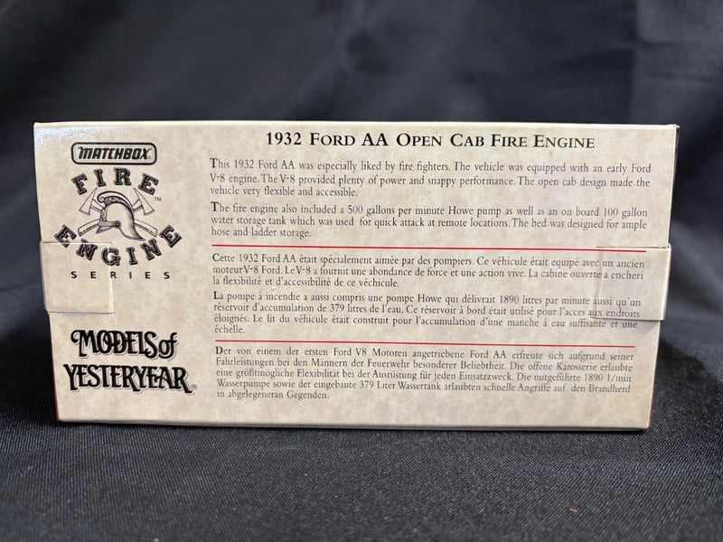 MATCHBOX MODELS OF YESTERYEAR 1932 FORD AA OPEN CAB FIRE ENGINE Item Size: Height: 5cm, Width: 3cm, Depth: 10cm, Weight: 0.5Kg Condition: Good - Refer To Images 584552+129