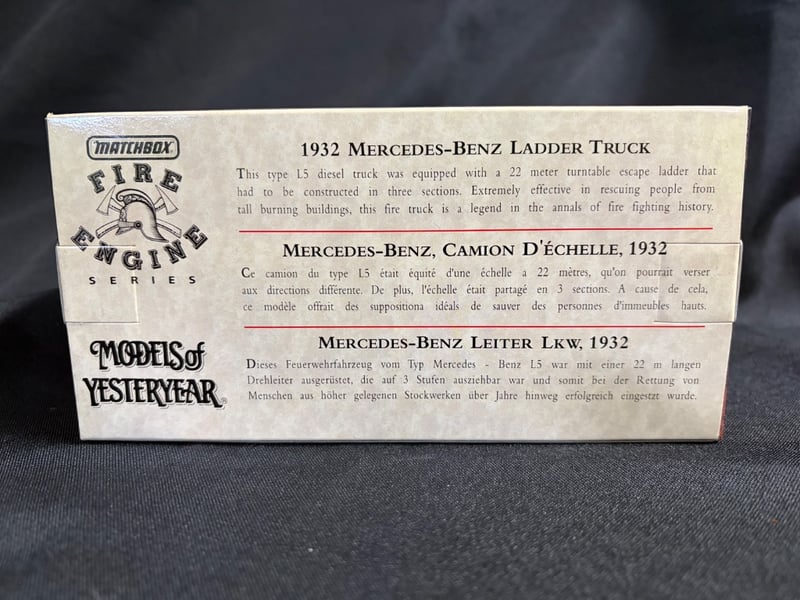 MATCHBOX MODELS OF YESTERYEAR 1932 MERCEDES-BENZ LADDER TRUCK FIRE ENGINE Item Size: Height: 5cm, Width: 3cm, Depth: 10cm, Weight: 0.5Kg Condition: Good - Refer To Images 584552+131