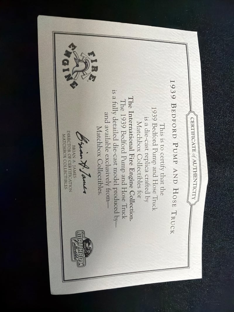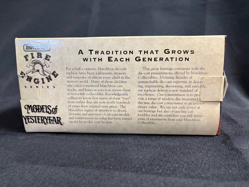 MATCHBOX MODELS OF YESTERYEAR FIRE ENGINE DIE-CAST COLLECTIBLE WITH ORIGINAL BOX WITH CERTIFICATE OF AUTHENTICITY Item Size: Height: 5cm, Width: 3cm, Depth: 10cm, Weight: 0.5Kg Condition: Good - Refer To Images 584552+133