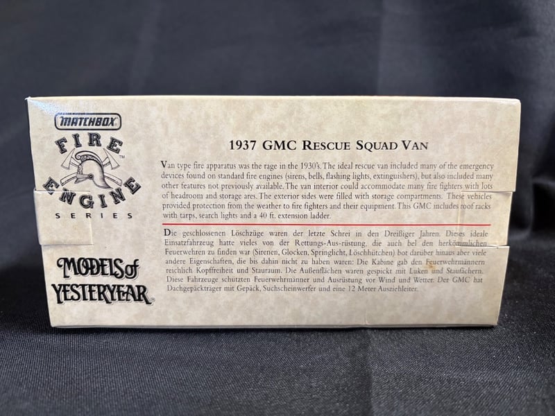 MATCHBOX MODELS OF YESTERYEAR 1937 GMC RESCUE SQUAD VAN FIRE ENGINE Item Size: Height: 5cm, Width: 3cm, Depth: 10cm, Weight: 0.5Kg Condition: Good - Refer To Images 584552+135