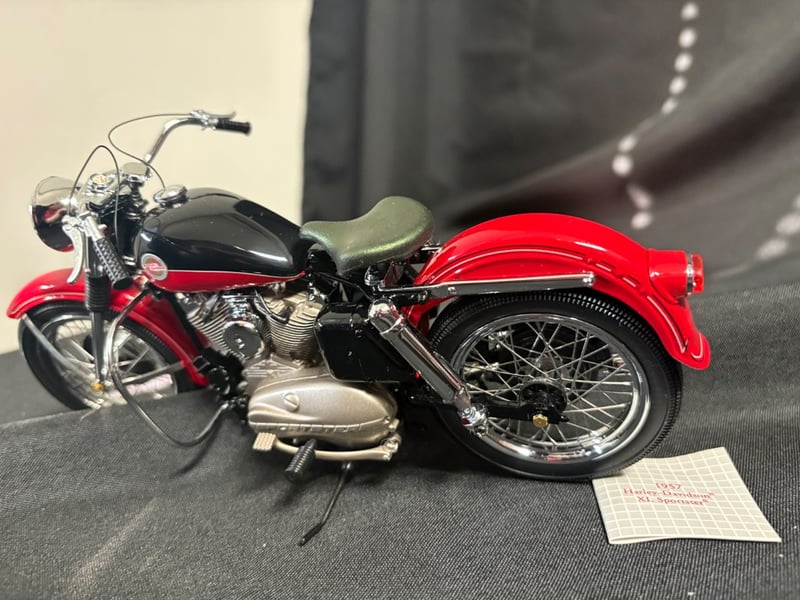 FRANKLIN MINT PRECISION MODELS 1957 HARLEY-DAVIDSON XL SPORTSTER DIE-CAST MOTORCYCLE Item Size: Height: 11cm, Width: 21cm, Depth: 9cm, Weight: 2Kg Condition: Good - Refer To Images 584552+162