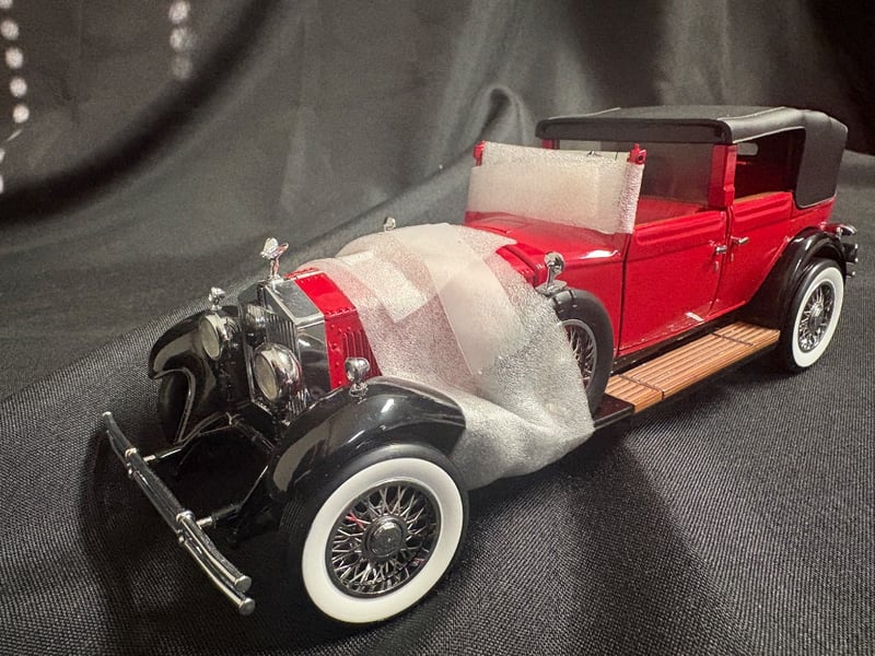 1929 ROLLS-ROYCE PHANTOM I CABRIOLET DE VILLE FRANKLIN MINT PRECISION MODEL INCLUDES ENVELOPE IN BOX, CONTENTS UNKNOWN Item Size: Height: 8cm, Width: 24cm, Depth: 8cm, Weight: 3Kg Condition: Good - Refer To Images 584552+163