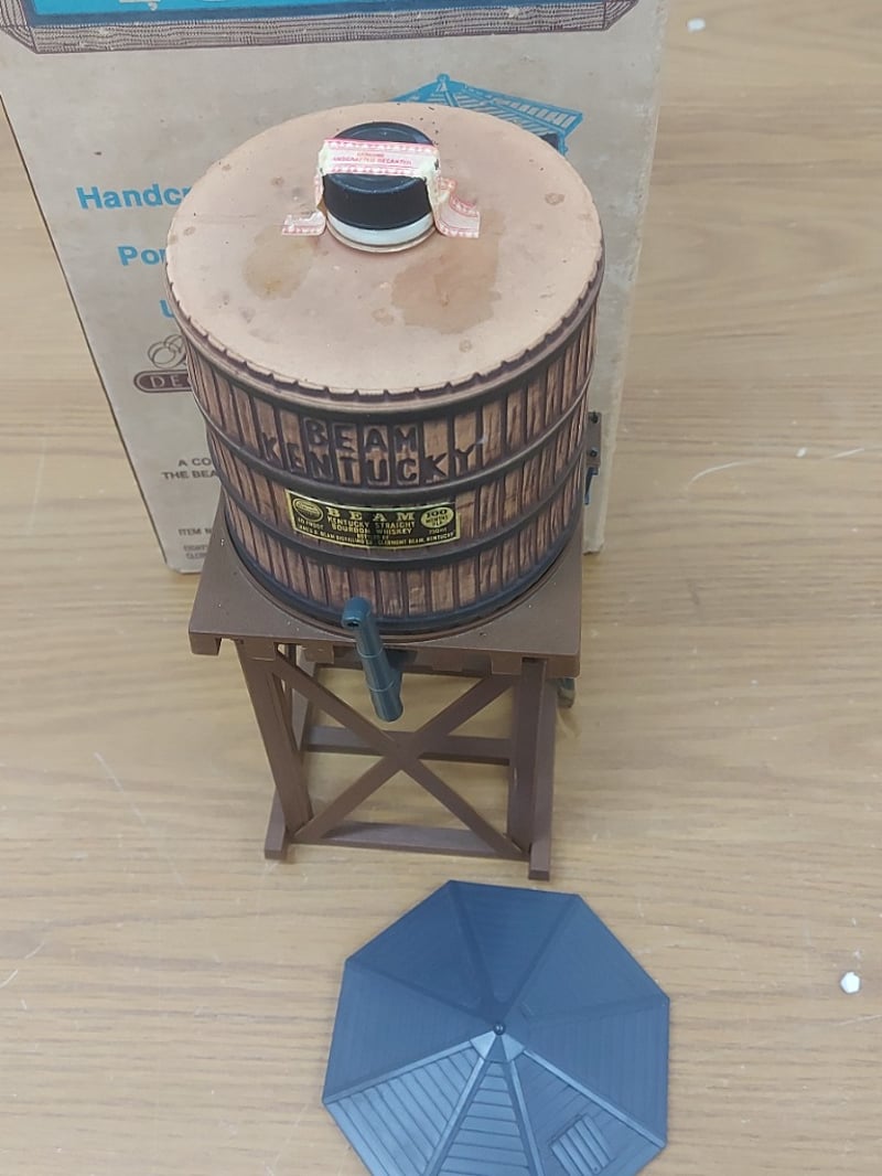 Jim Beam Kentucky Bourbon Whiskey Wooden Water Tower Decanter With Original Box,