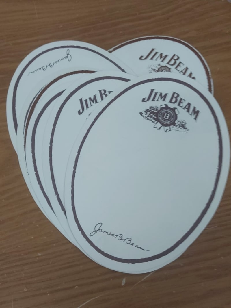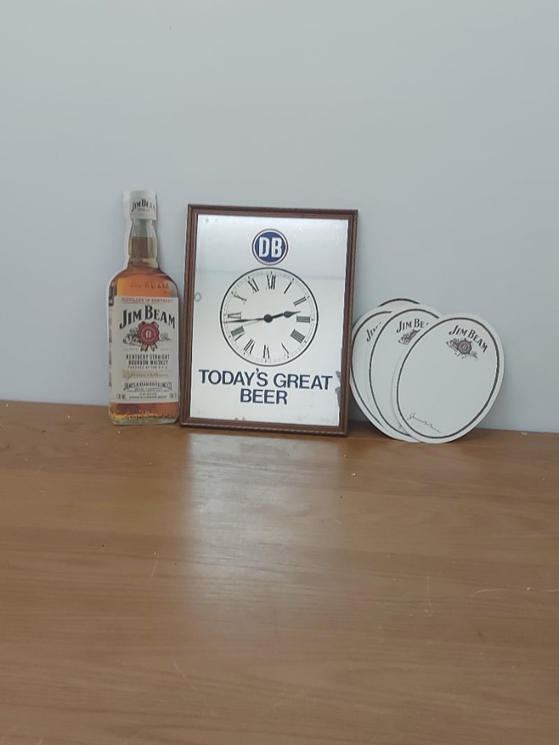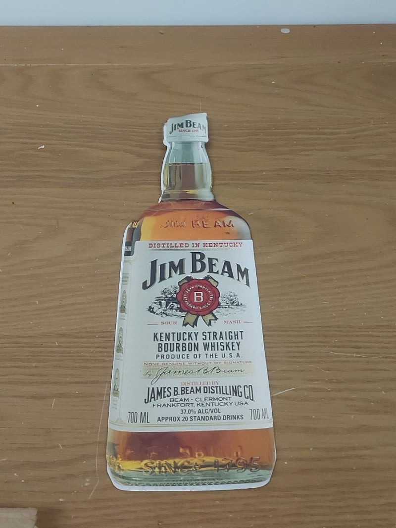 JIM BEAM ADVERTISING COLLECTION - CARDBOARD CUTTOUT BOTTLE, CLOCK, AND JIM BEAM CIRCLESCondition: Fair - Refer To Images584569+224